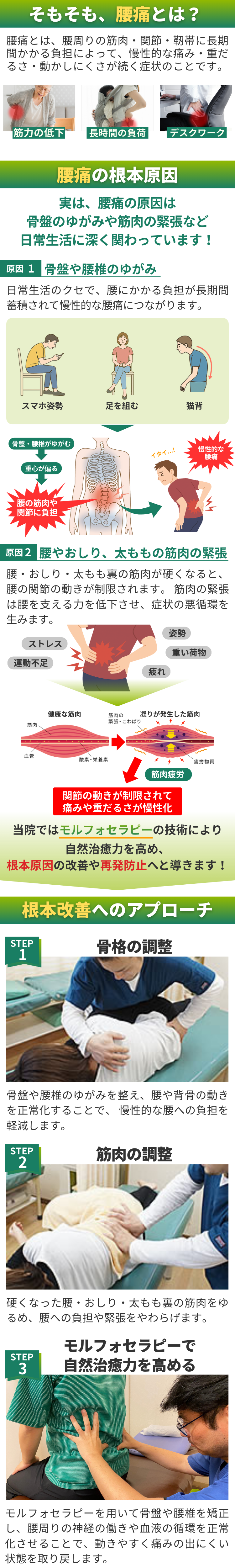 モルフォセラピーを使って体の根本である骨格にアプローチをするので、様々な症状を根本から解消します。体の状態を把握してから行う完全オーダーメイド施術です。